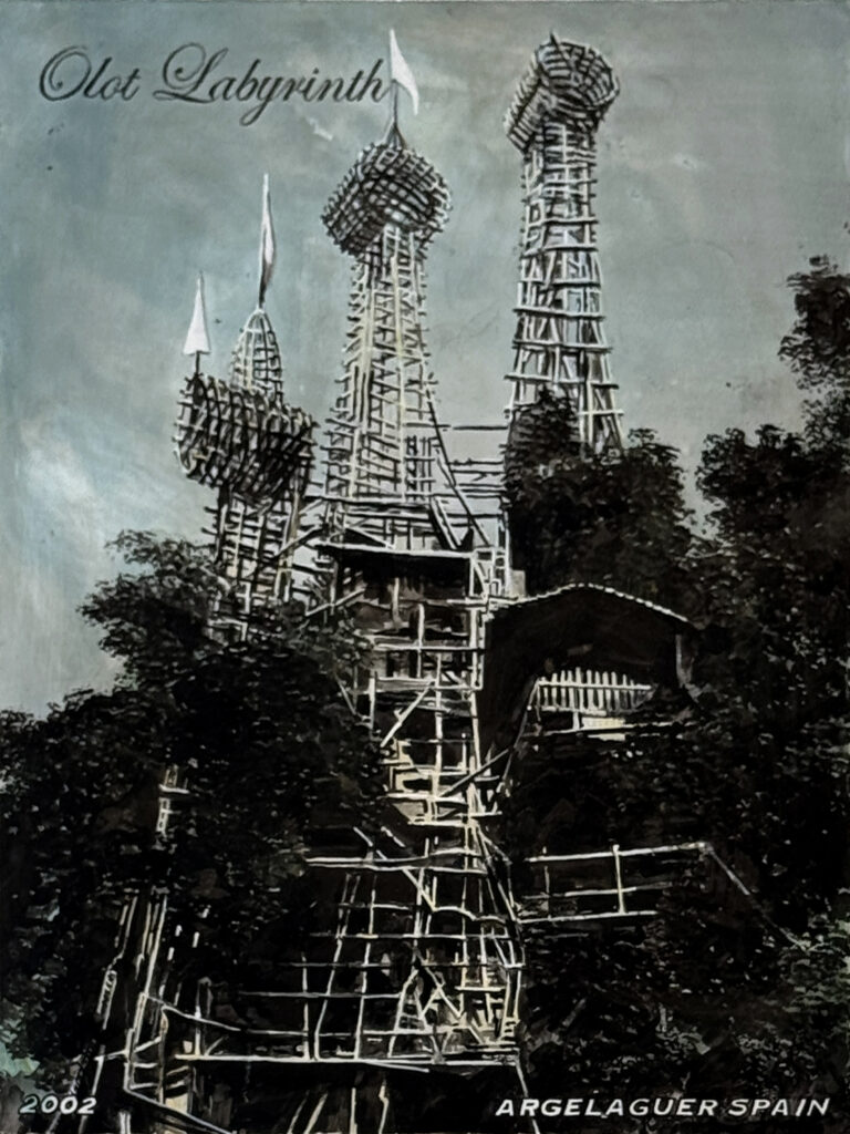 The Olot Labyrinth was the creation of Josep Pujiula i Vila, a former textile worker, beginning in 1980. Local authorities deemed the homemade park, which was built on public land, dangerous and pushed for it to be dismantled. They succeeded in 2002 and Pujiula i Vila took apart his creation to make room for new roads. Shortly after, he began to create a similar site near his previous work, some of which survives. Pujiula i Vila died in 2016.